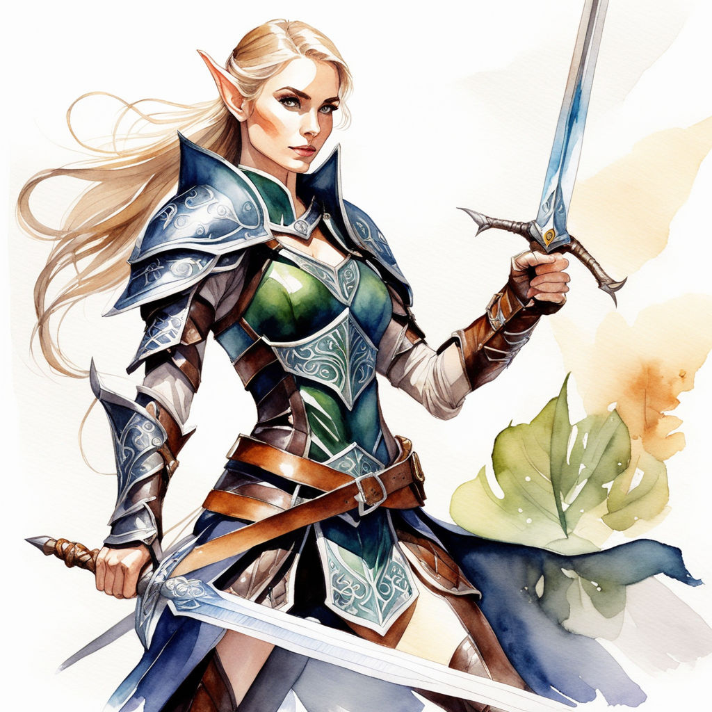 Amidst the resounding clash of swords and the harmonious chime of elven plate armor, Tyezara emerges as a formidable warrior, etching her place in the epic tale of House Orbryn. She is the cousin of Caelaesar Orbryn, and often accompanies him on business trips. She shares an extraordinary bond with her identical twin, Taessae. Tyezara captivates with her beauty, enhanced by an ever-present grin, piercing blue eyes, and flowing blonde hair. Her radiant presence is rivaled only by her dynamic spirit, and she articulates with deliberate thoughtfulness, standing tall and exuding unwavering confidence. Clad in mythral elven plate armor, distinguished by its distinctive greenish hue, Tyezara wields three heron-marked weapons, two swords and a Long Dagger. Among them is the Elven Bastard sword, a living legacy passed down through generations on her mother's side of the family. It stands as the sole weapon she did not personally craft. Tyezara adheres to a strict code of honor, refusing to engage in what she deems dishonorable. Her appearance is marked by a cascade of blond hair, a practical choice tied back before entering the dance of battle. With a determined air, she carries the weight of her family's martial heritage with the grace of a seasoned warrior. In the grand tapestry of warriors, Tyezara emerges as an exemplary Weapons Master, a title earned through a lifetime dedicated to the art of combat. Born into a lineage of fighters, her destiny aligns with a familial legacy steeped in honor, valor, and mastery of arms. Raised to believe that war is inevitable, Tyezara embraces the philosophy that readiness for battle should be universal, a credo instilled in her from a young age. Unlike her sister, Tyezara was ideally suited for the rigorous training of a Weapons Master. Focused and determined, she underwent apprenticeship in the revered School of the Heron, a prestigious institution of combat. Her journey began as a willing and disciplined apprentice, selected at a preteen age to undergo the demanding regimen of a Weapons Master. The training not only forged her body and soul into a lethal weapon but also instilled in her a profound connection with three chosen weapons, extensions of her very being. These weapons, the Bastard Sword, Paired Swords, and the Long Dagger, symbolize her identity. The mastery of her chosen weapons grants Tyezara unique fighting techniques, showcasing a profound understanding of their capabilities, weight, balance, and exact length. This level of awareness sets Weapons Masters apart from other fighters. Tyezara's commitment to honor defines her character, refusing to engage in dishonorable acts. She maintains a balance between the thrill of battle and a deep respect for her opponents. Her sense of honor is not merely a code but a way of life, viewing her swords not just as tools but as extensions of her family's legacy. In moments of quiet reflection and seclusion after her training, Tyezara personally crafted her most cherished weapons, making the process a deeply personal and almost religious experience. The Bastard Sword, crafted by her mother and taken up after her mother's and father's deaths, bears symbols representing her school, training master, and personal emblem. Similarly, marked with a different training master, the Bastard Sword is a tribute to her mother, who served as her training master and represents the Heron Totem, symbolizing exceptional traits. Tyezara Avenged her parents deaths Killing the Assasin that killed them. Throughout her adventures, Tyezara's journey is guided by a code of conduct that places her honor above all else. Fiercely loyal to those who earn her respect, she fights not solely for personal glory but to uphold her family's legacy of honor, valor, and strength of arms. In a world of ever-changing battles, Tyezara stands as a steadfast guardian, a living testament to the artistry of combat mastered by a Weapons Master. |
