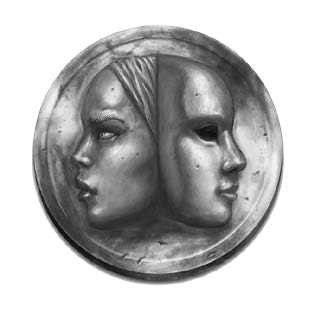 - Holy Symbol: A woman's face in profile, facing left, wearing a smiling mask on the back of her head.