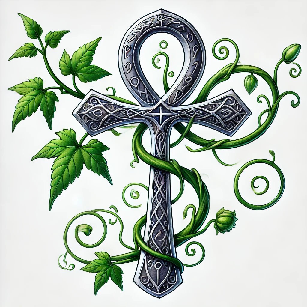 - Holy Symbol: The most recognized symbol of Shai`tan is a silver ankh entwined with green vines. This symbol represents the intertwining of life and nature, emphasizing the sanctity of life and the healing power of nature. The silver ankh symbolizes immortality and divine protection, while the vines represent growth, renewal, and the natural world. Devotees of Shai`tan often wear this symbol as a pendant or engrave it on their armor and shields, invoking his blessings in times of need.