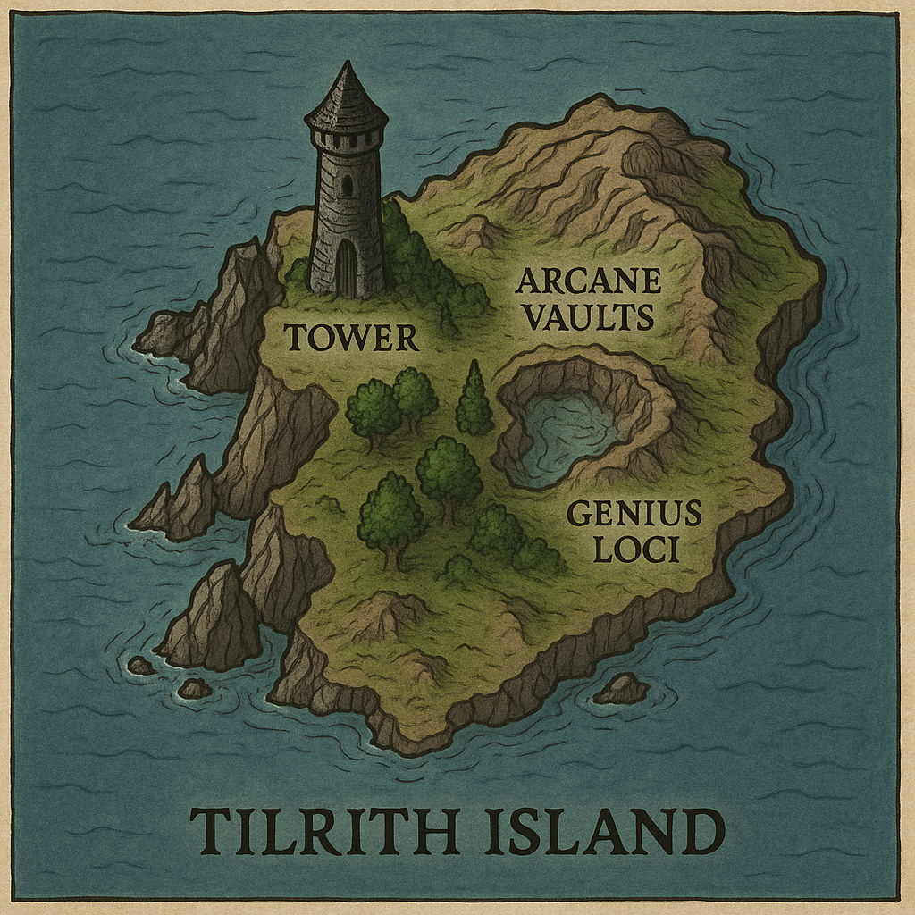 Tilrith Island is a mostly forgotten, rocky isle off Evermeet's northern coast, shrouded in powerful wards and erased from most maps. Once a simple prison for the exiled archmage Sifahir, its true nature is far deeper, it is a living, arcane vault, a planar nexus where ancient elven high magic binds fey lords, aberrations, and otherworldly horrors beneath its surface. The island itself is sentient, a genius loci that senses every thought and movement within its borders, twisting the seas and skies to deter intruders. Its tangled spell-web, fueled by long-enslaved mages and artifacts of immense power, distorts reality around it, creating illusions and fear to drive away travelers. Should its wards fail, the catastrophic energies bound below could unravel Evermeet's mythal, unleashing forgotten powers into the Realms.