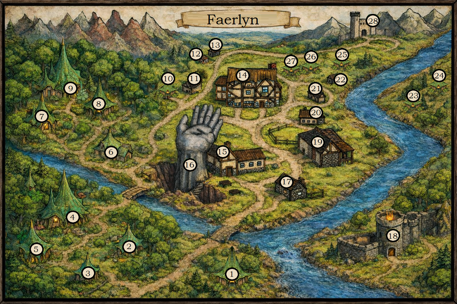 - Eldergrove Council: Composed of ranchers, craft-masters, and druids, this council helps guide the village's decisions, with each member bringing their expertise to the governance of Faerlyn.