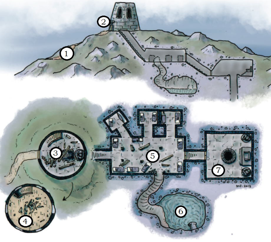 You can customize this adventure by replacing either Grakk Skullcrusher or Ruknar Foulbreath with NPCs from your campaign, or from the backgrounds of the characters. Grakk Skullcrusher, Ruknar Foulbreath, or both might have some relationship to one or more of the player characters, either by blood or by having crossed paths in the past. It might even be the case that, before his incarceration, Ruknar Foulbreath had murdered a character's family member, companion, or friend. The Night Blades can be customized to represent a particular faction of Goblins from your own game world. Add details to the tower and the chambers below it to highlight a previous empire or some other layer of the history of your campaign. Customize the initial story hook by switching out the quest giver to an NPC the characters have worked with in the past.