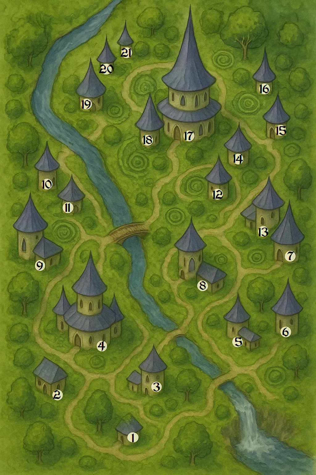 - Brambleshade Inn: A mossy guesthouse for passing dignitaries, herbalists, and pilgrims. Offers safety charms to guests. Proprietors: Iliaran & Dellin, married stewards.