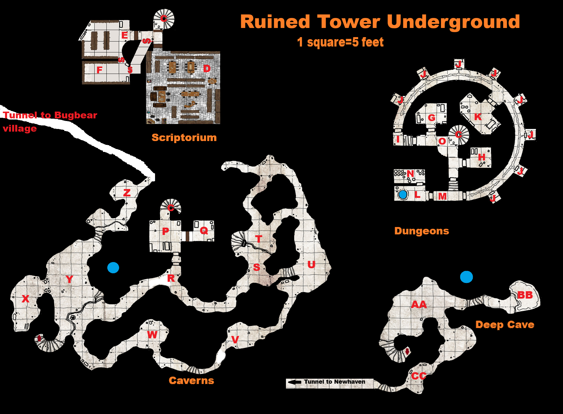 The tunnel from Cave CC leads towards Newhaven, branching off into a labyrinthine network beneath the city. This complex serves as the lair for the xvarts and their bugbear allies, who have dwelled here for centuries, plotting their invasion.