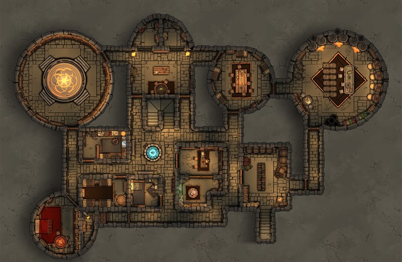 Descending into the lower level reveals a stark contrast. Here, seven rooms retain their sturdy construction, with four intact tower rooms standing as guardians of a forgotten era. These chambers, largely untouched by time, now serve as the stronghold of the Xvart inhabitants. Crude defenses and hidden traps snake through the corridors, remnants of the Xvarts' resourceful adaptation to their environment. Despite the shadows that linger in every corner, vestiges of the castle's former glory can still be glimpsed in the faded tapestries and weathered stone carvings that line the walls.