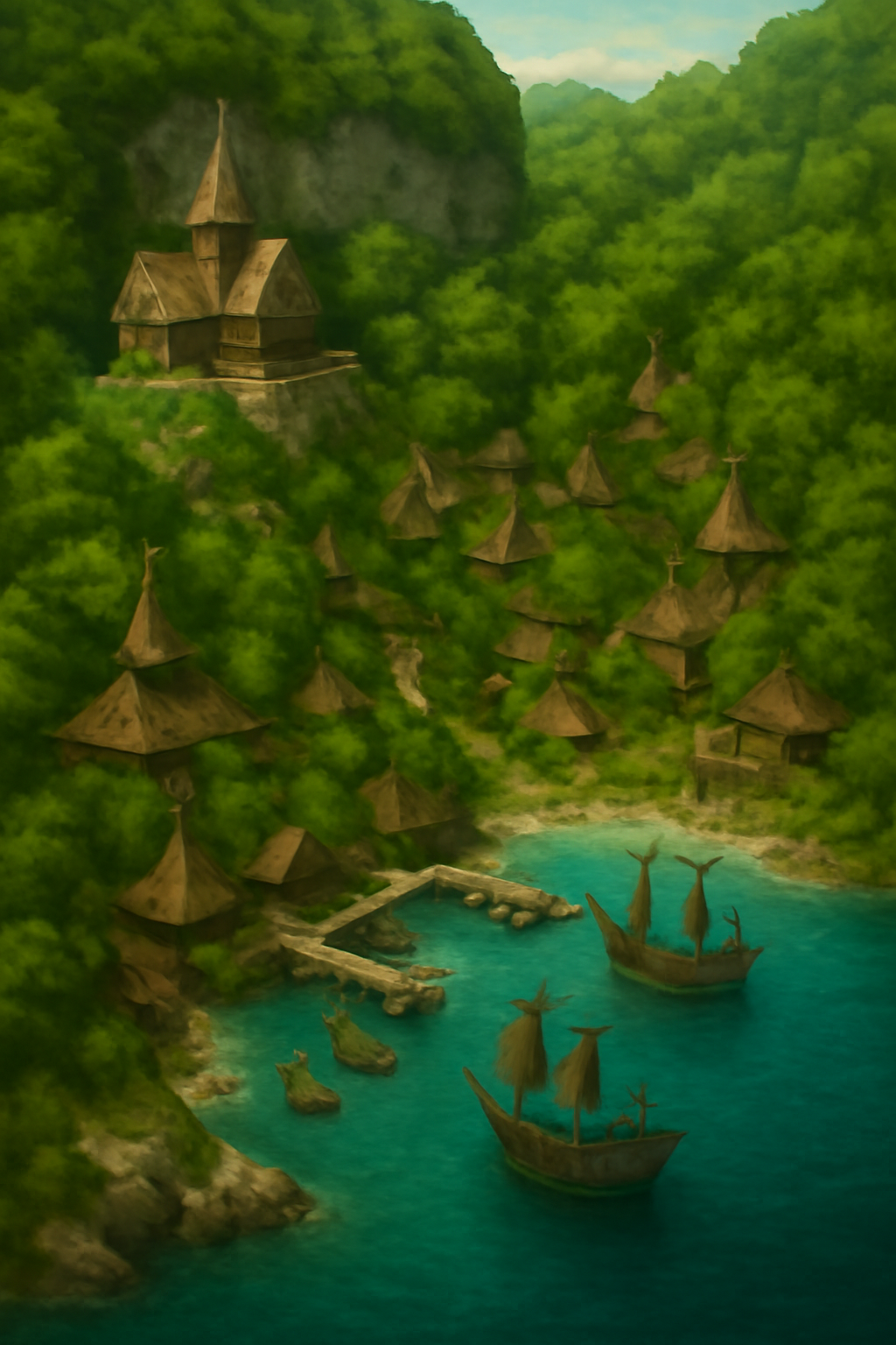 The Ishara Straits are notorious for their hidden reefs, sudden currents, and thick fogs, making navigation incredibly dangerous for those unfamiliar with the waters. This natural barrier makes Ishara not only difficult to approach but also the perfect location for secretive activities. The Shara Forest itself provides further camouflage, with the town being hidden deep within its sprawling trees, only accessible by a series of hidden waterways and well-guarded paths.