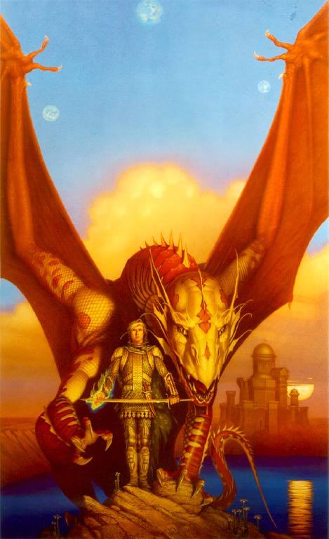 A Dragon Rider is an Elf who has been 'bonded' to a Dragon. They are marked with the Gedwëy Ignasia, or "shining palm", which was given to them when their dragon first hatched. Dragon Riders are ferocious fighter's, combining both the savage fighting of a Dragon mount and the Dragons Magic, with the Magic and fighting skills of it's Elven rider as well as the psionic abilities of both. They are surely the champions of the air. The identities between the dragon and the Rider can merge so that they become one. Through the bond between Dragon and Dragon Rider, all Riders become stronger of body, keener of mind, and truer of senses, and gain unnaturally long life. Dragon Riders experience other physical changes over decades and centuries, and, as their Dragon grow, their magical potential surpasses that of other magic wielders. Through their Bond, Dragon Riders have the ability to telepathically communicate with their dragons, as well as any other creatures, which is useful in battle. This very strong bond between dragon and Rider is akin to the Leutha`Tala and is formed with their first physical contact. The Bond: Dragons form a telepathic bond with their Rider, often before the Dragon has hatched from its egg. Upon hatching, the young dragon makes contact with its Rider for the first time which leaves a mark, the Gedwëy Ignasia, or "shining palm", on the Dragon Rider’s hand. The bond forms between the Dragon and the Rider that melds their minds on a basic level, binding them for life in the most enduring friendship that can possibly exist. The bond formed between the Rider and Dragon can often become so strong that one cannot survive the loss of the other. Training: Extensive training can develop the abilities to make Riders some of most powerful mages and swordsmen of the land. The newly bonded pairs of Dragon and Rider were taken to a secret place where other Riders train both the young Dragon and it's rider together. The training consists of the senior dragon training the younger in aerial maneuvers (especially those used in battle), building stamina for long distance flights, how to build their speed and increase their acceleration, and dragonlore and the ancient language. A mandatory requirement is that the Rider and Dragon share their lessons - by keeping their minds connected they can listen in on each others lessons and learn. For example, if a young Dragon was being taught how to spot updrafts, and his Rider was being taught art, the two were required to maintain their mental connection so that the Rider would learn about updrafts and the Dragon would learn about art. After class, the senior Rider would test the young dragon on art and the senior dragon would test the young Rider on updrafts to make sure each had been following the other's lesson. Both the senior Dragon and the senior Rider were addressed by their students as 'Ebrithil'. Young Riders and Dragons were put through strict regimens of physical and mental exercises until their Ebrithil finds them to be responsible enough to join the ranks of true Dragon Riders. The formal training of a Rider and Dragon traditionally takes decades, and the Dragon Riders continue to hone their skills throughout their lives. Alignment: Dragon Riders are generally match the alignment of thier Dragon, though a dragon will usually accept a rider that is close to the same alignment. There have been no known reports of a good Dragon accepting an evil rider or vice versa. Armor: Dragon Riders can wear just about any armor type. Most prefer elven plate or chain. Weapons: Dragon Riders are equiped with one to two bladed weapons and a long bow and a Lance. Bola's and Javelins are also popular weapons among the sparse ranks.
