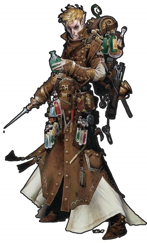 Whether secreted away in a smoky basement laboratory or gleefully experimenting in a well-respected school of magic, the alchemist is often regarded as being just as unstable, unpredictable, and dangerous as the concoctions he brews. While some creators of alchemical items content themselves with sedentary lives as merchants, providing tindertwigs and smokesticks, the true alchemist answers a deeper calling. Alchemists’ lives are an adventure all on their own. The experiments they perform often have unexpected results, though occasionally a discovery will be made. The closest an alchemist is likely to come to an ordinary life is working as an herbalist or craftsman. Other alchemists spend their time in the halls of academia, where they discuss their findings and theories, serve as medics or bombardiers in military services, or pursue more unsavory lifestyles. But the lure of undiscovered knowledge, unexplained phenomena, and rare essences often calls even the most timid of alchemists out of the safety of their laboratories and workshops to explore dark caverns and ancient ruins. Most alchemists believe that by experiencing the world first-hand and by experimenting with the rarest of ingredients, they might discover an essence combination that could lead to a new age of alchemy.